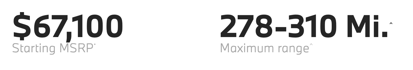 Preliminary EPA-estimated figures are for comparison purposes only. Your actual mileage will vary, depending on speed, driving habits, trip length and driving conditions; actual mileage may be lower. Note for MPGe: All data are provisional and subject to official confirmation. The provisional power consumption figures have been calculated based on the ECE test cycle.